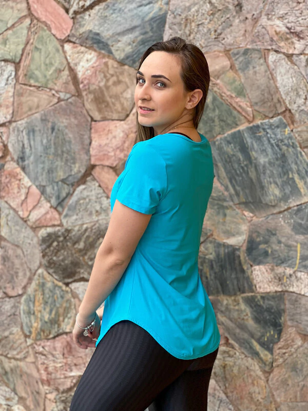 A Camiseta Arredondada possui 16% de elastano e se ajusta ao corpo.