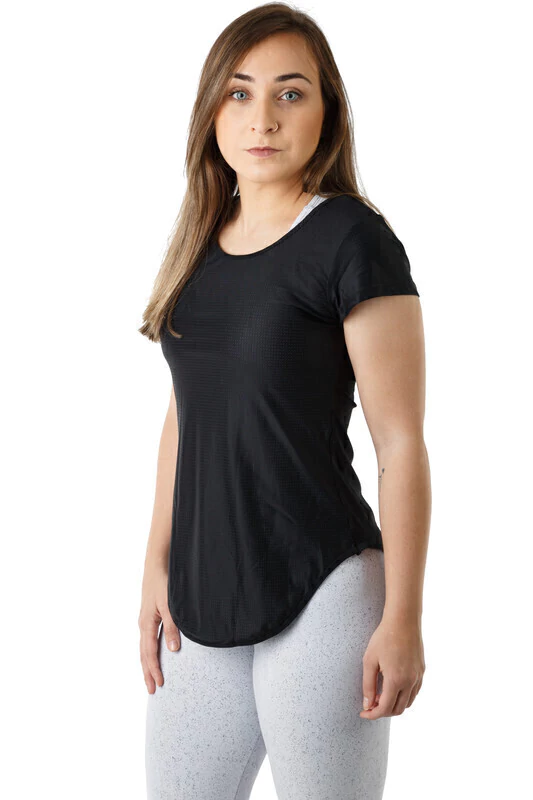 A Camiseta Arredondada possui 16% de elastano e se ajusta ao corpo.