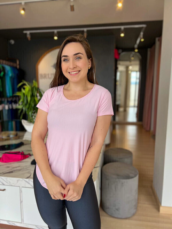 • •Camiseta elegante com lateral que valoriza a silhueta;