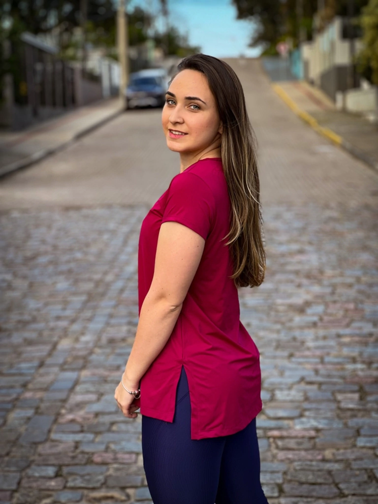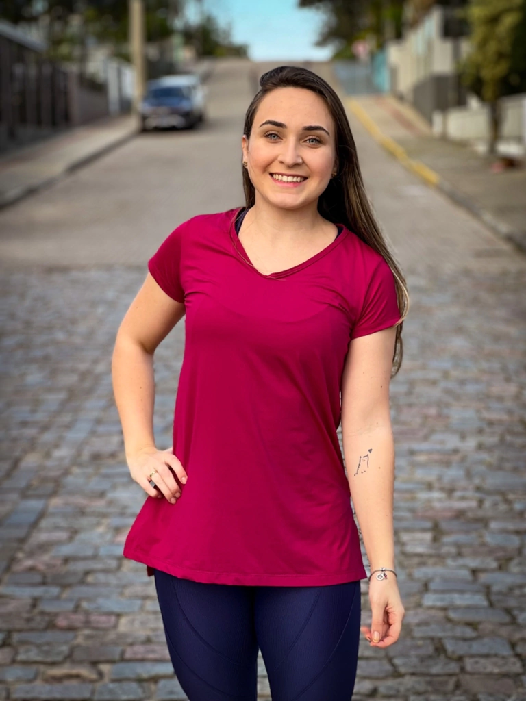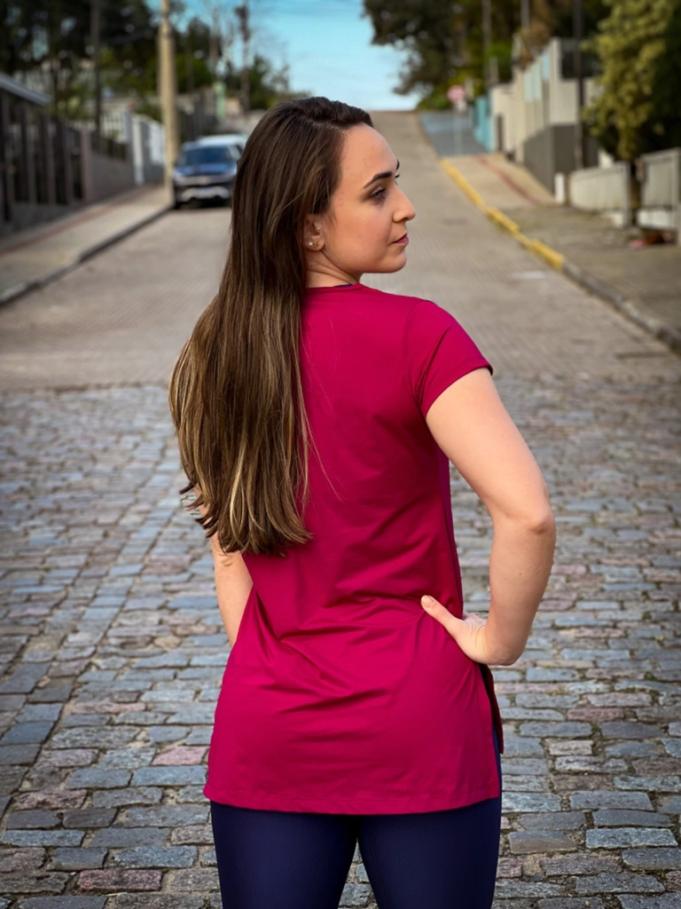A Camiseta Long possui 10% de elastano e se ajusta ao corpo.