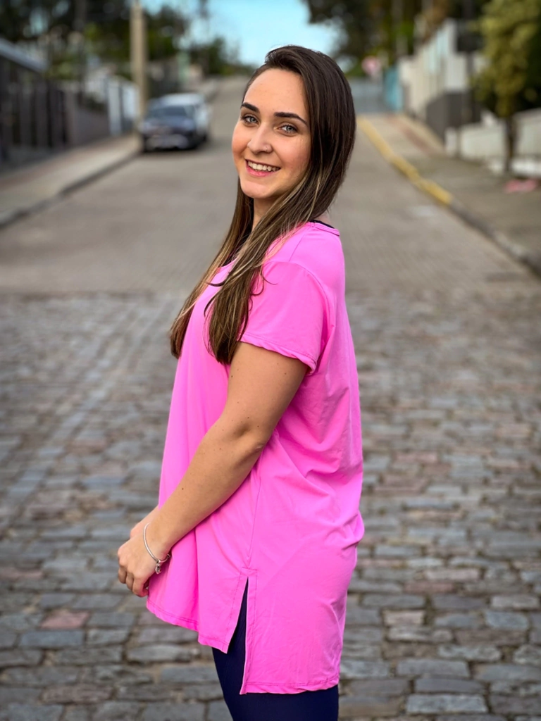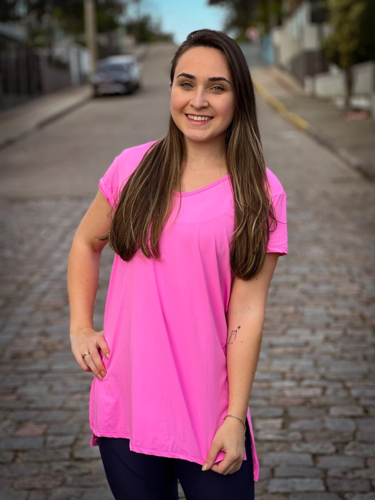 A Camiseta Long possui 10% de elastano e se ajusta ao corpo.