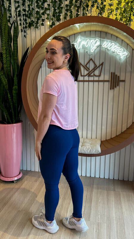 Cropped Sky possui 10% de elastano e se ajusta ao corpo.