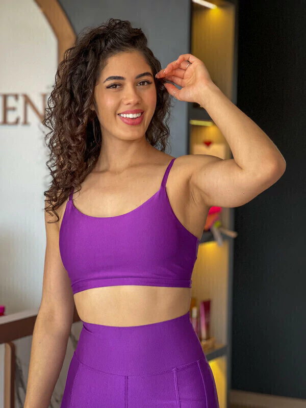O Top Glow Íris possui um design super estiloso e tendência na moda fitness. Possui tecido microcanelado e bojo removível.